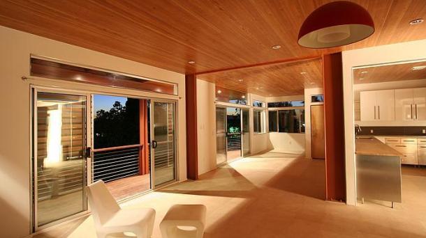 This apartment with nice shades of blue and a beautiful bathroom will help you to relax after work.