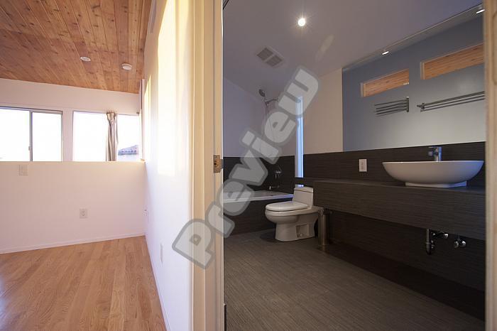 This apartment with nice shades of blue and a beautiful bathroom will help you to relax after work.